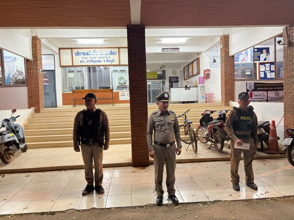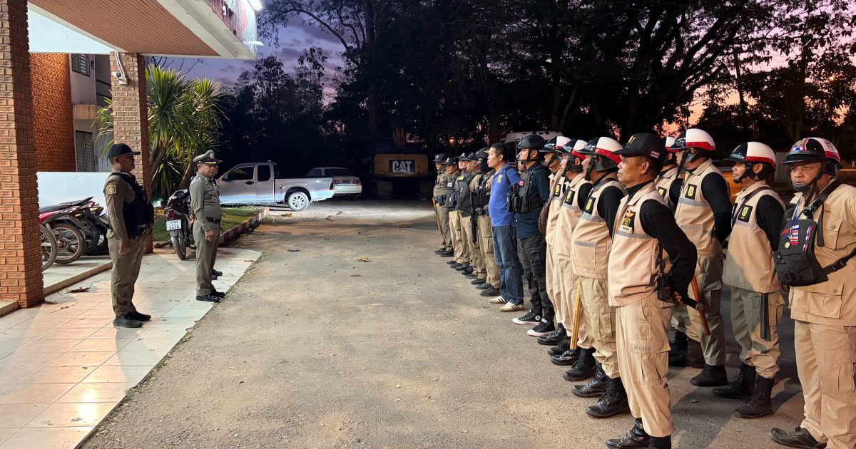 พ.ต.อ.ธีระศักดิ์ เจริญศรี ผกก.สภ.ภักดีชุมพล ปล่อยแถวข้าราชการตำรวจ และ อพปร.ฯ เพื่อชี้แจ้งการปฎิบัติหน้าที่ในการคุมงานประจำปี อำเภอภักดีชุมพล (งานมะขามหวาน) 2568