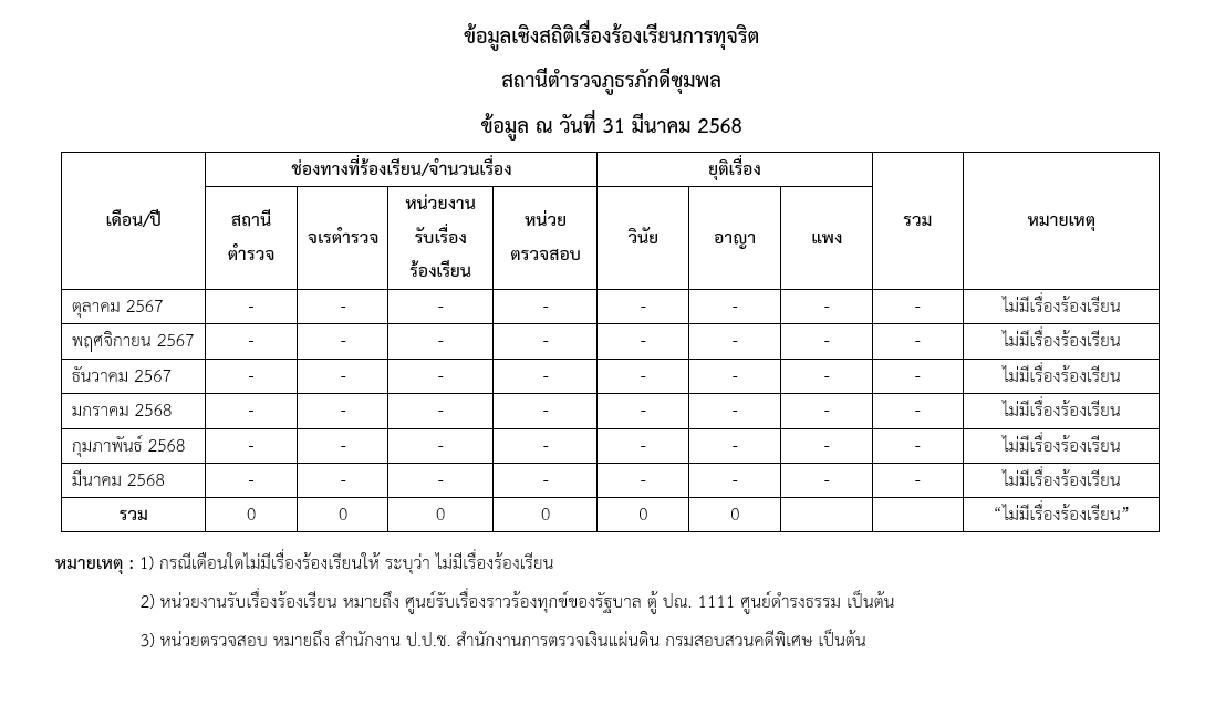 ข้อมูลเชิงสถิติเรื่องร้องเรียนการทุจริตประจำปีงบปะมาณ พ.ศ. 2568 (ตุลาคม 2567 - มีนาคม 2568)